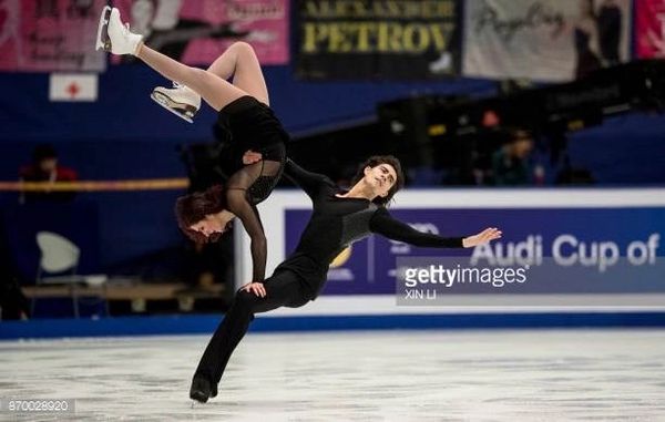 Elliana Pogrebinsky (founder) with partner Alex Benoit performing their created Fountain Lift at the Audi Cup of China in 2017